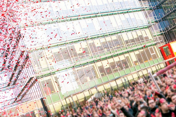 Conseguimos involucrar a más de 2.000 empleados en la coordinación de reparto uvas, cotillón y cava, ¡y un brindis de 2.000 personas juntas! ¡Todo un reto! Y por si fuera poco, Plata en los Premios Eventoplus 2015 al Mejor Evento de Celebración.